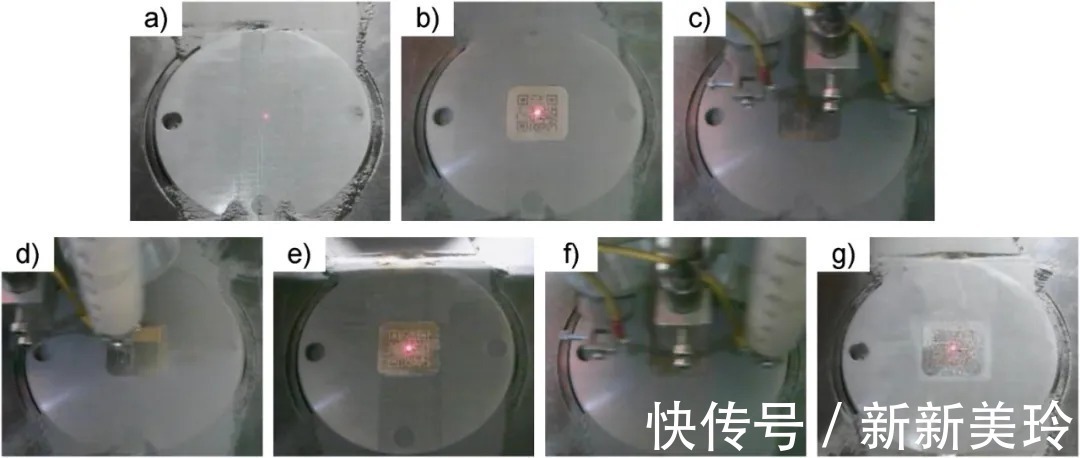 图2 打印过程中植入的QR代码的记录的CCD图像: a) — g) 图1中所示的每一过程 .植入的QR码在打印过程中记录的CCD图像: